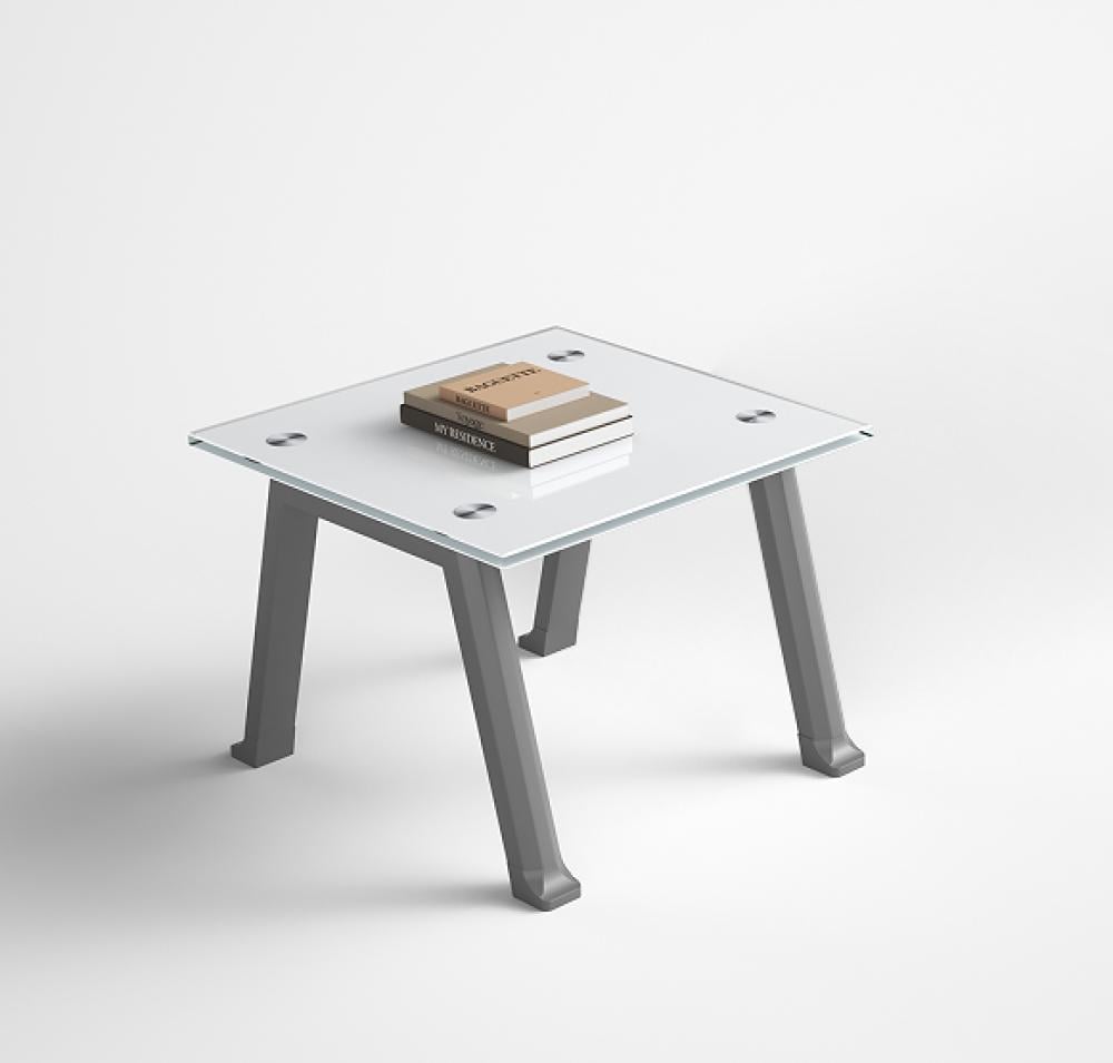 - التصميم: طاولة بسطح زجاجي وأرجل معدنية