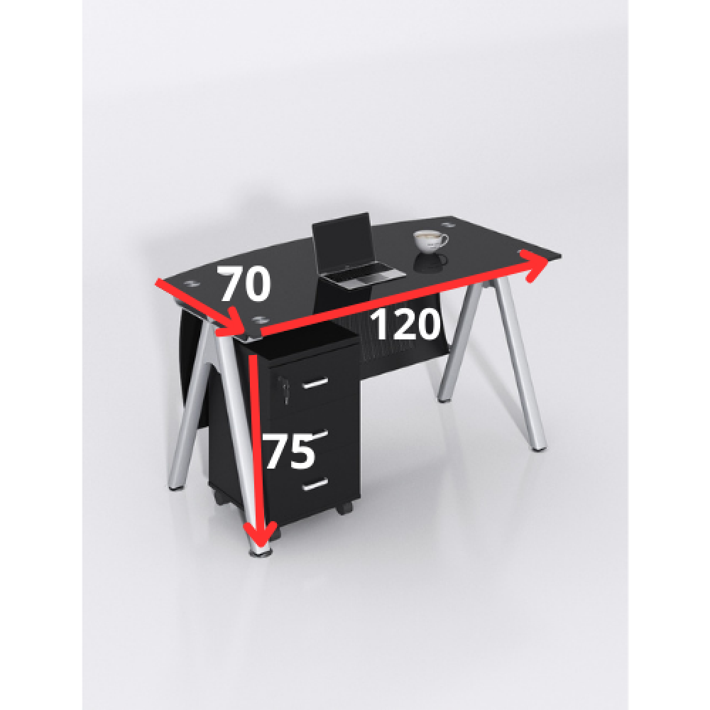 احصل على مكتب عصري بتصميم أنيق يجمع بين الأناقة والمتانة، حيث يأتي بسطح زجاجي مقاوم للحرارة وقوائم معدنية متينة مع ستارة معدنية تضفي لمسة فريدة. اطلبه الآن واستمتع بمكتب مثالي للمكاتب المنزلية أو أماكن العمل.